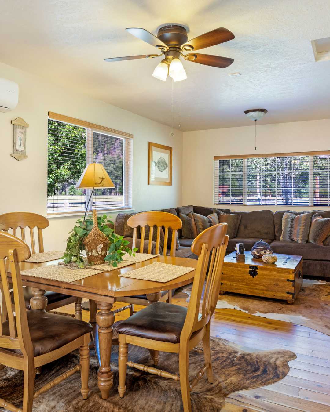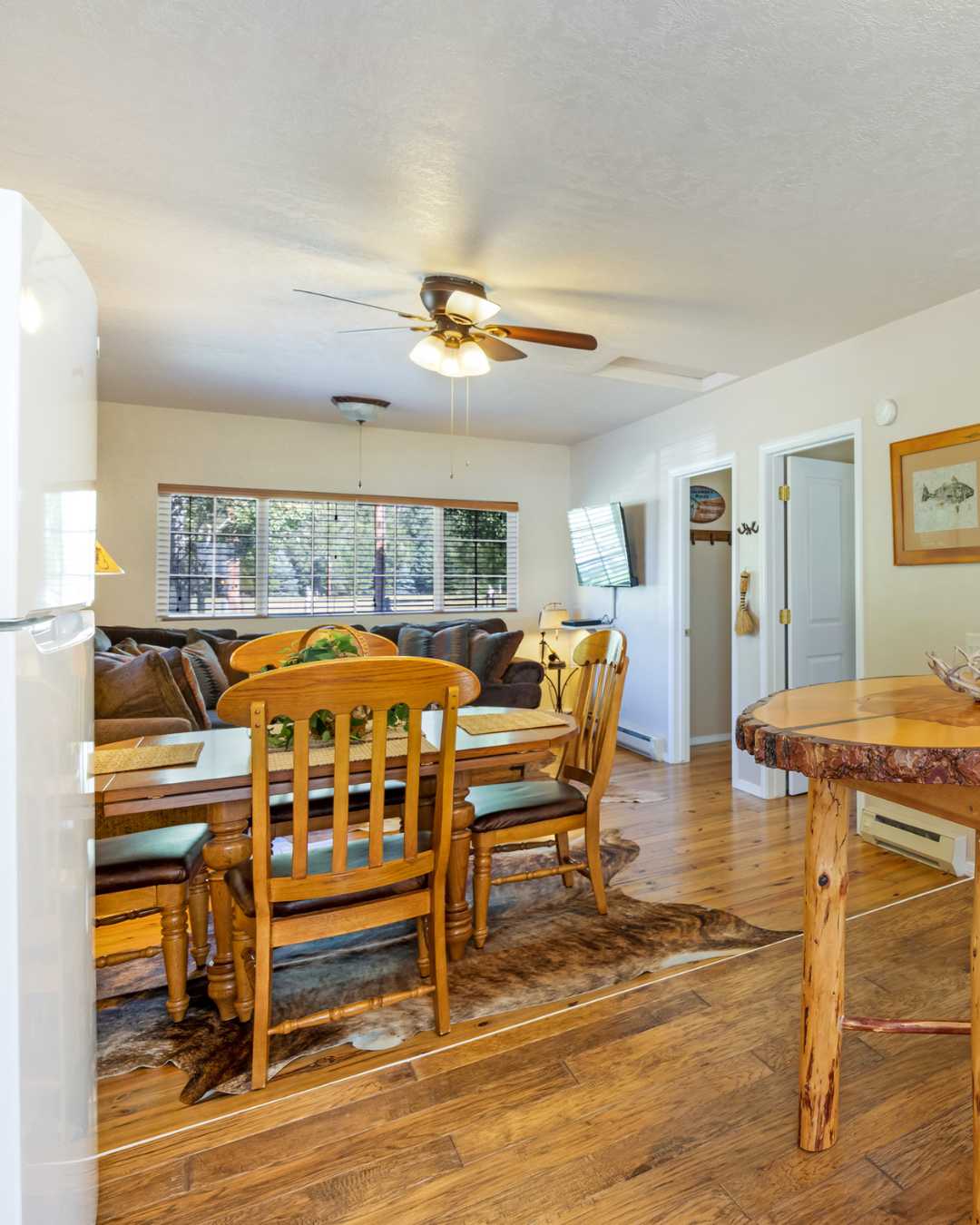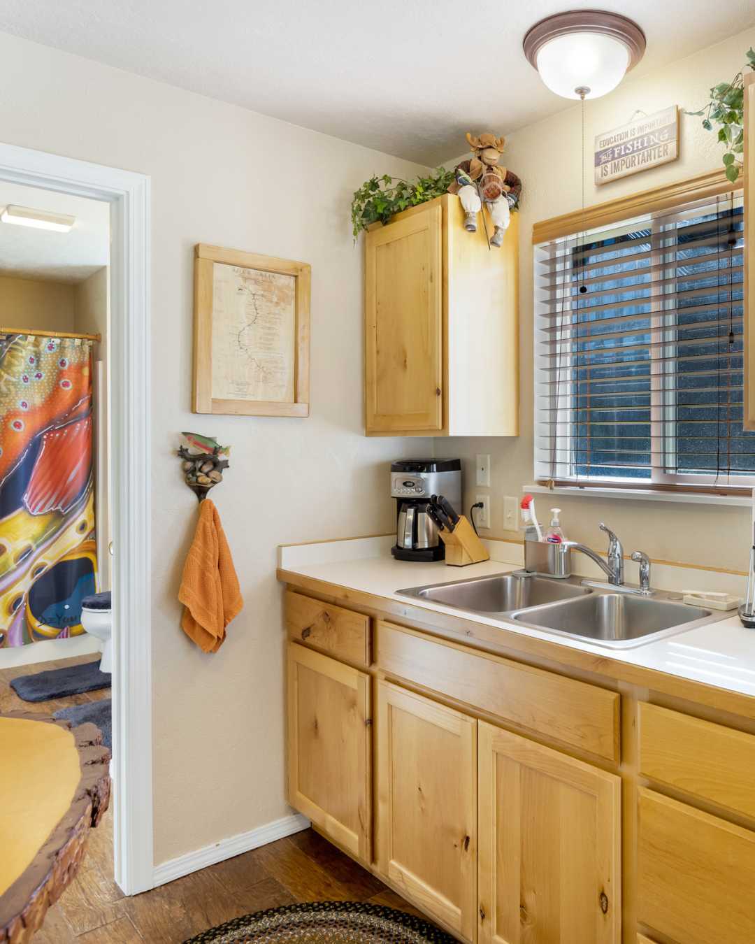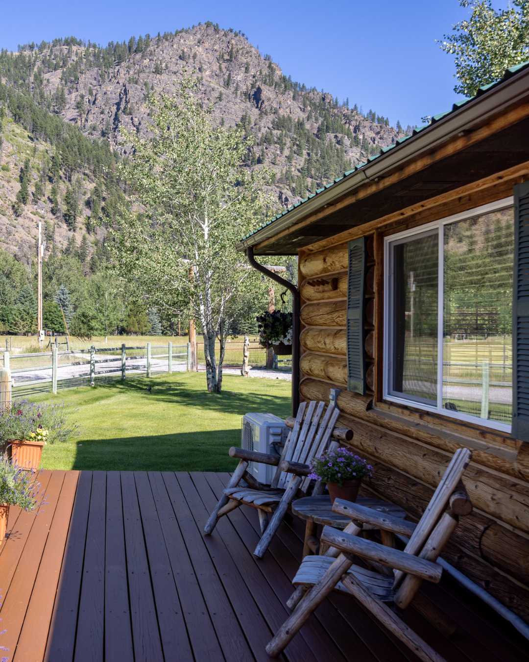 With beautiful mountain views and an easy walk to Rock Creek, Serendipity Cabin has a full kitchen with dining table, a great living room, and a nice deck looking out to the meadow. Bedroom 1 has a queen bed in it, and bedroom 2 has a set of twins. There’s a little fire ring for evenings under the stars, and plenty of photo ops for the bighorn sheep, whitetail deer, the occasional moose – or even a black bear!